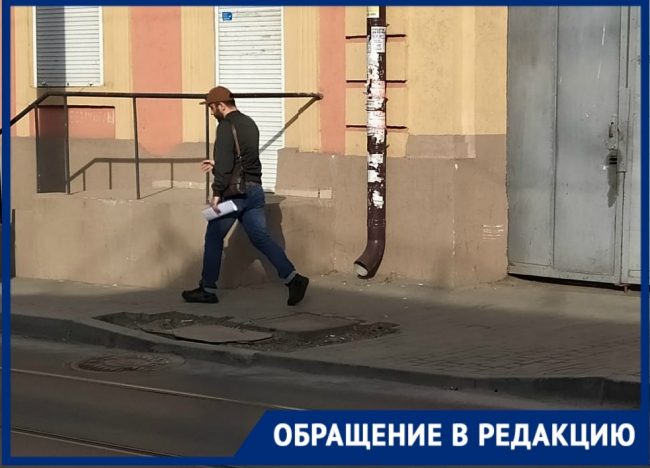 Ростовчанка Инна Иванова рассказала о том, что небольшая яма на тротуаре на улице Станиславского вот уже год остается без внимания властей. Публикуем обращение в редакцию.